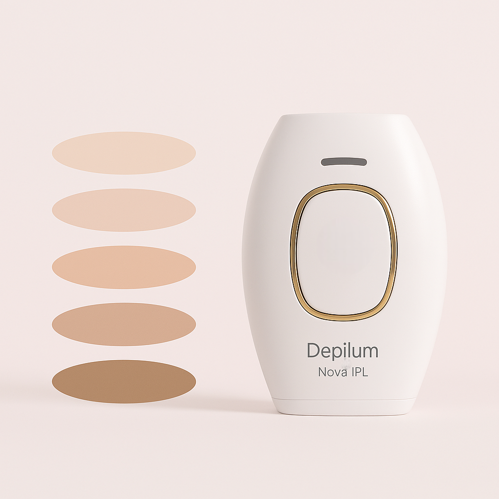 Depilum Nova IPL incluye 5 niveles de intensidad para adaptarse a diferentes tonos de piel, pero no es recomendable para pieles muy oscuras ni para vello blanco, gris o muy claro, ya que el contraste es necesario para que la luz sea eficaz.
