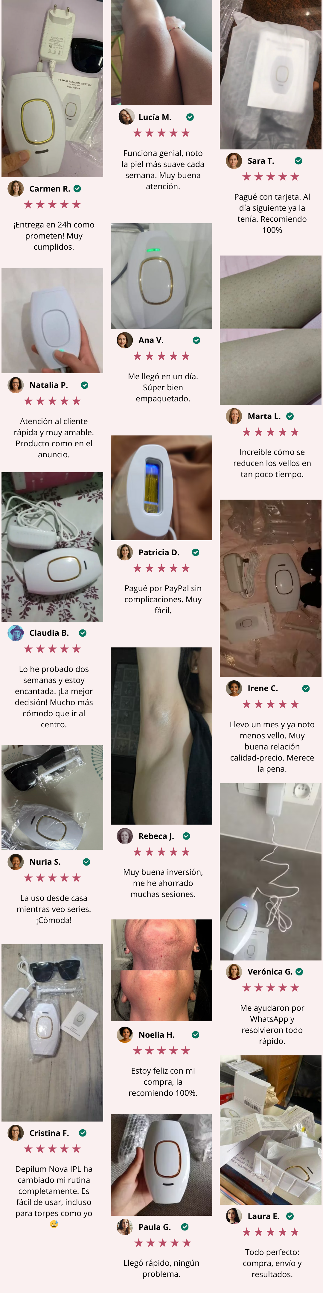 Depilum Nova IPL está diseñada para minimizar molestias. La mayoría de los usuarios lo describe como una leve sensación de calor o cosquilleo. Además, puedes ajustar la intensidad en 5 niveles según tu sensibilidad y zona a tratar.