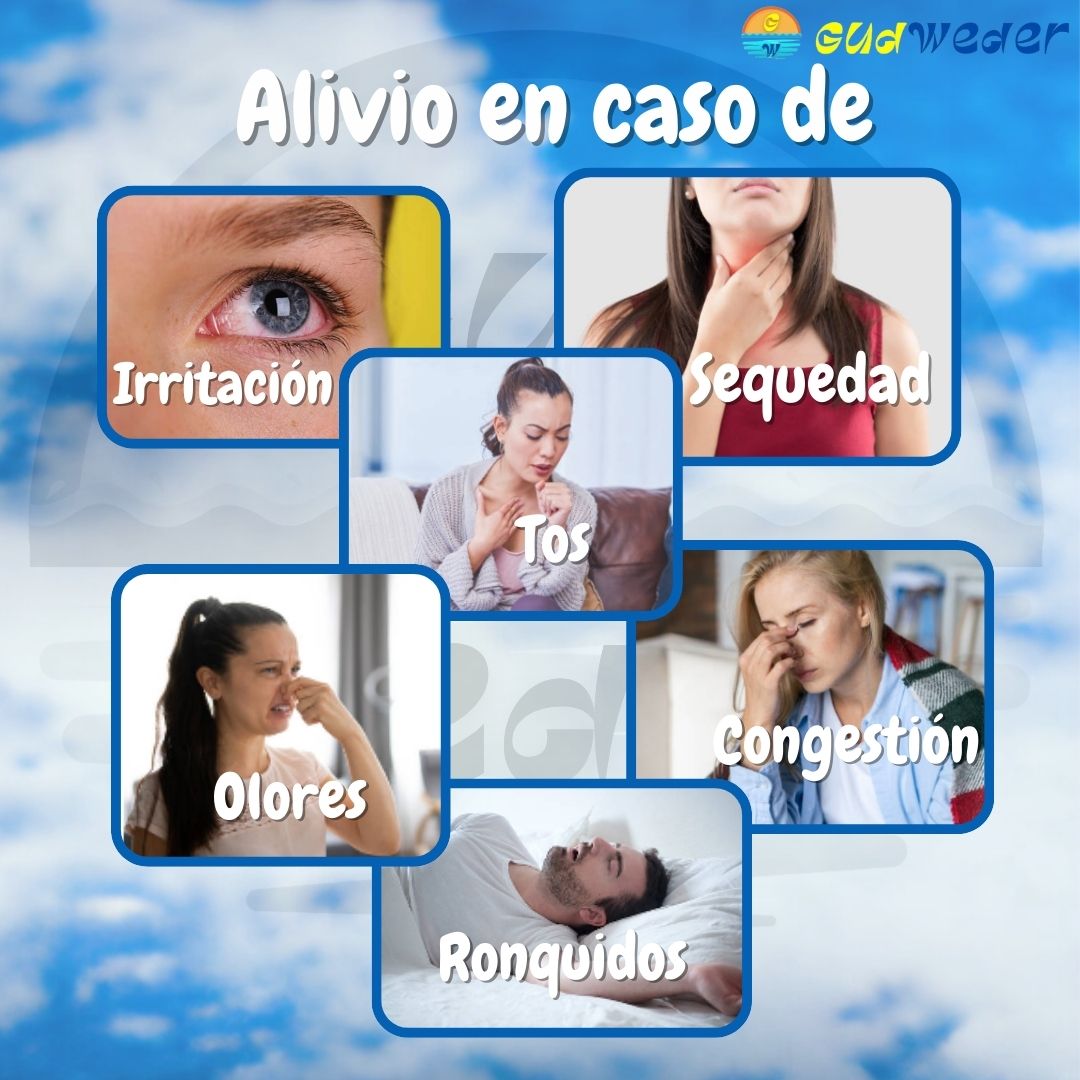 Al mejorar la calidad del aire, ayuda en casos de alergia, ronquidos, garganta y ojos secos, congestión, etc.