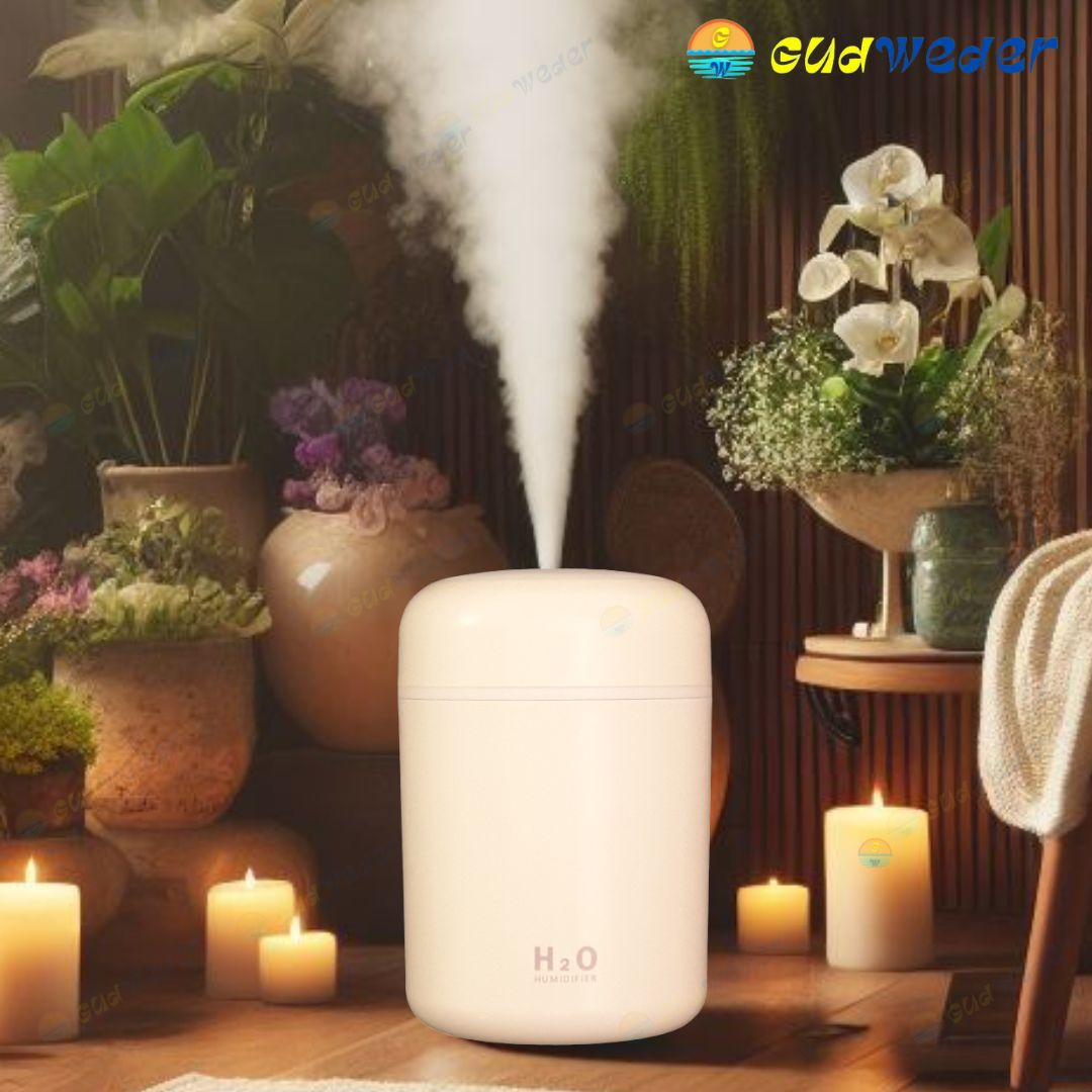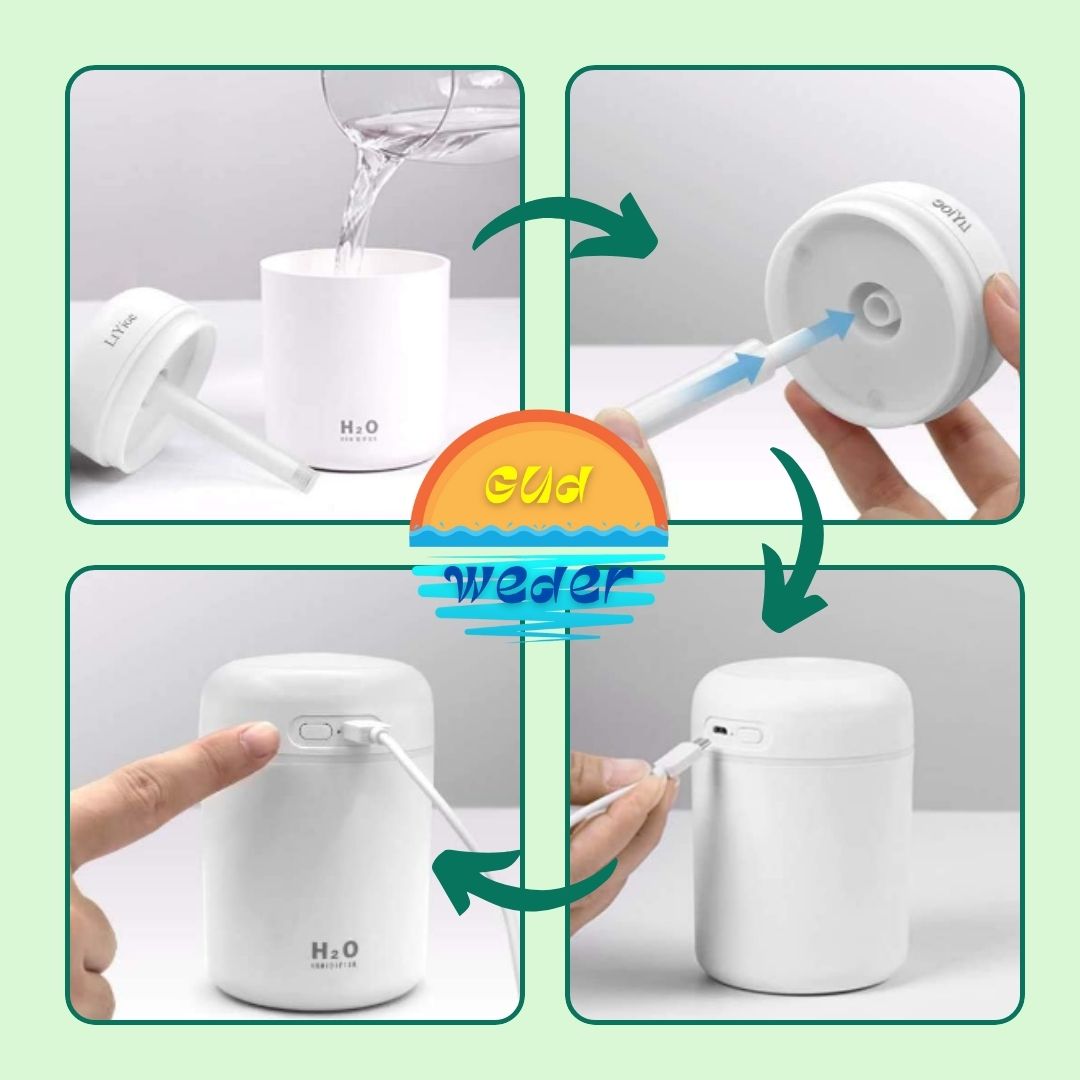 Humidificador Portátil: Diseño compacto y alimentación USB (cable incluido) para llevar a cualquier lugar: dormitorio, oficina o automóvil.